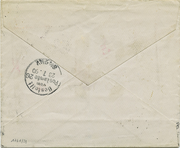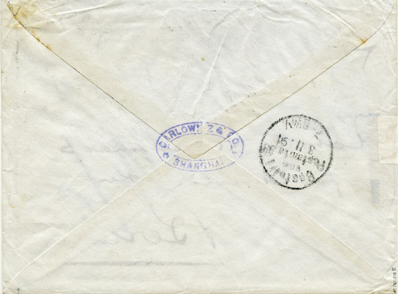 26.09.1891: 4x 20Pf Vorläufer (Mi.V48) mit 4x sauberen Stempel KDPA SHANGAI an eine "Actien Gesellschaft.." in BERLIN (3.11.1891); rückseitig Firmen-Ovalstempel "CARLOWITZ & Co / SHANGHAI"; geprüft Dr.Steuer. Umschlag Beförderungsspuren.