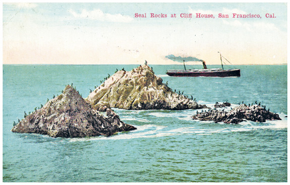 1916, Weltkrieg: gebrauchte Farbansichtskarte "Seal Rocks at Cliff House, San Francisco, Cal." von SAN FRANCISCO (27.3.16) nach TIENTSIN (16.4.16).