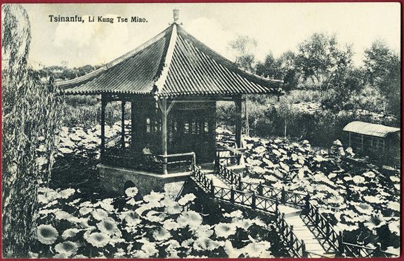 15.01.17: 2 Cents (Mi.39) mit Stempel TSINANFU auf Ansichtskarte "Tsinanfu, Li Kung Tse Miao." (Schrein) in das Interniertenlager in Tientsin. Sehr späte Post.