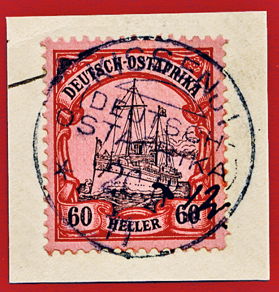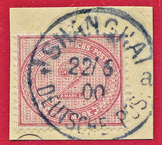 22.06.1900: 2Mark (Mi.V37e) mit Stempel SHANGHAI"a" (ArGe 4) auf Briefstück