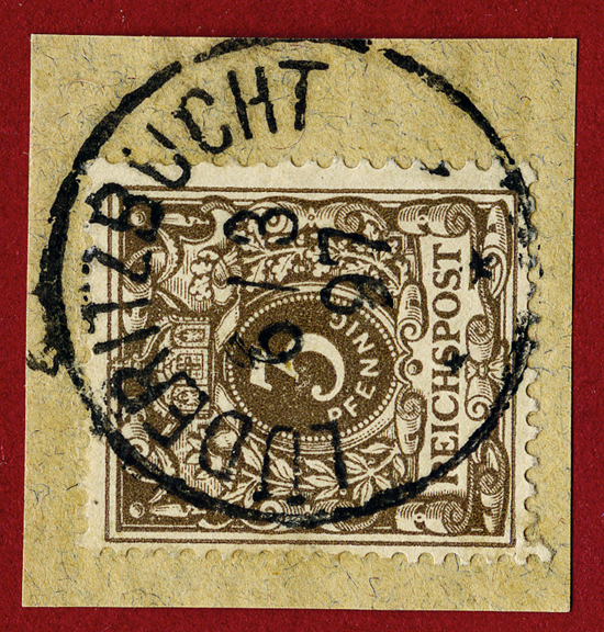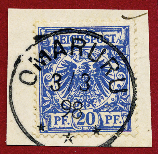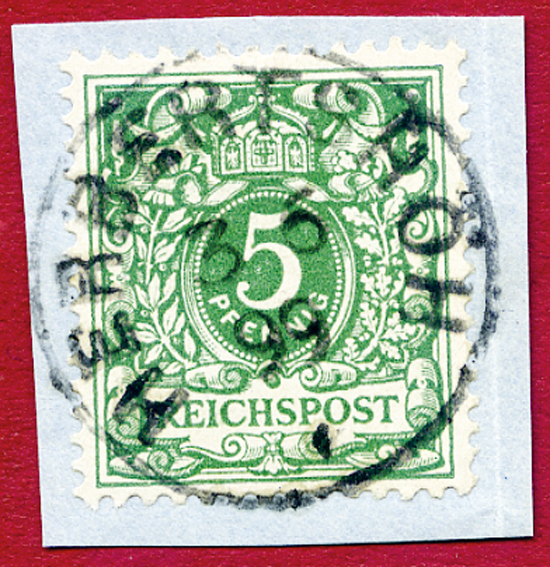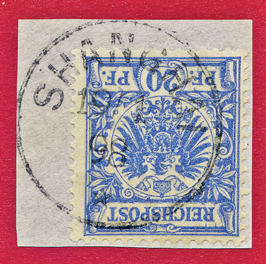 19.01.1898: 20Pf (Mi.V48d) auf Briefstück mit Stempel SHANGHAI (ArGe 2).