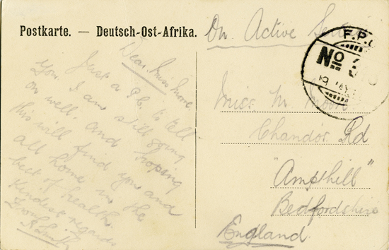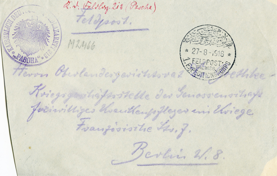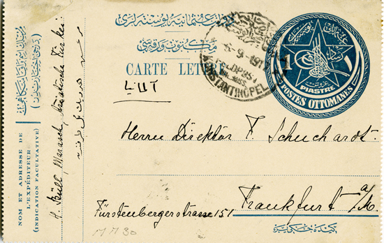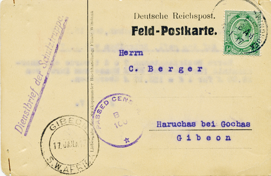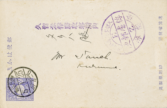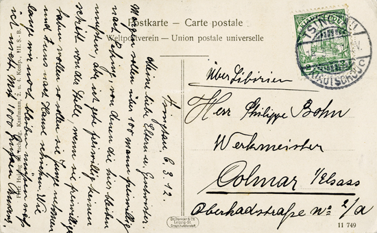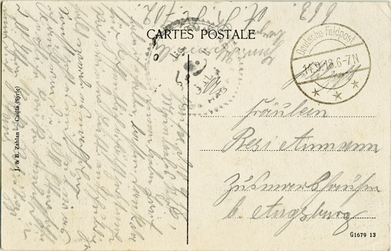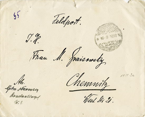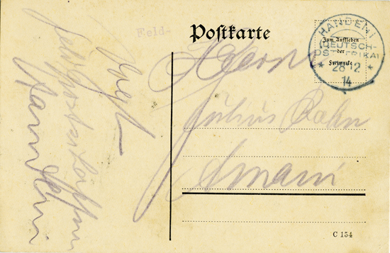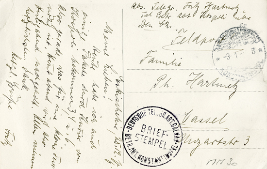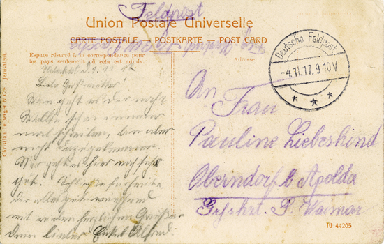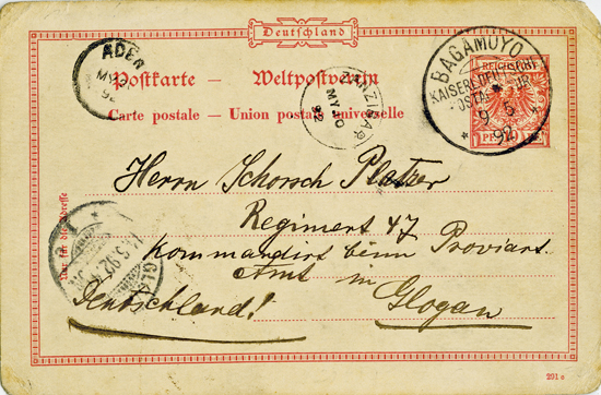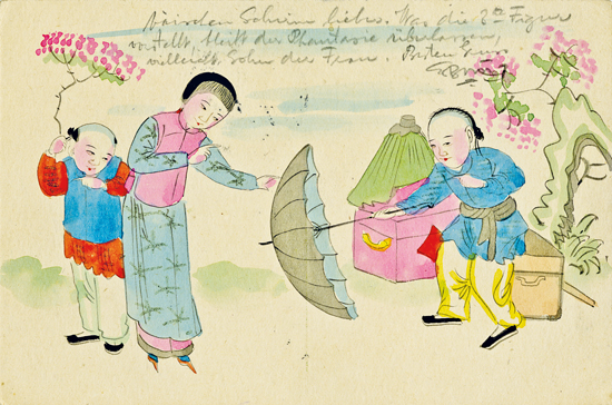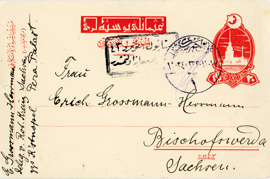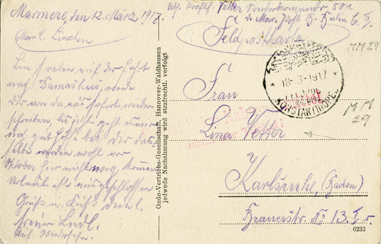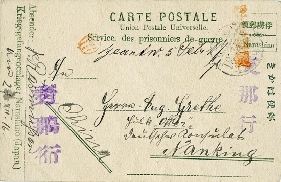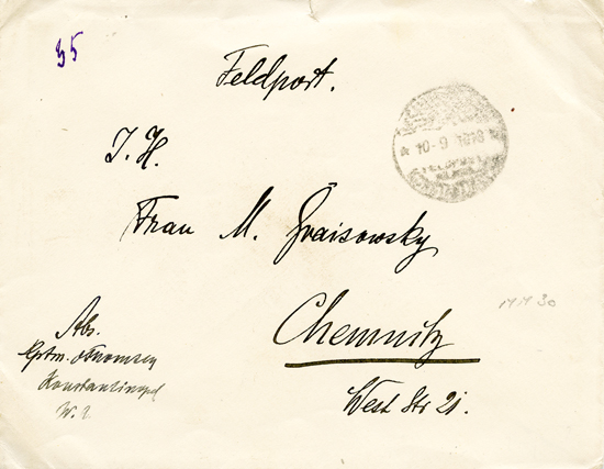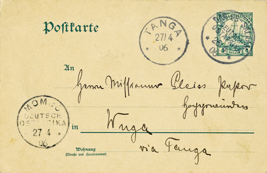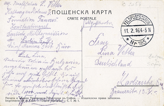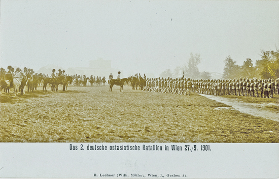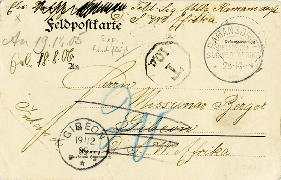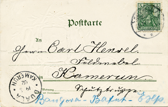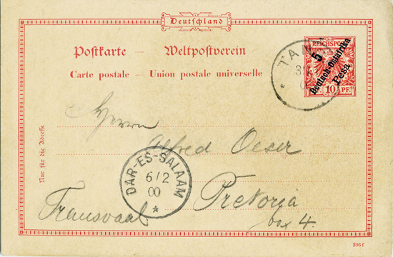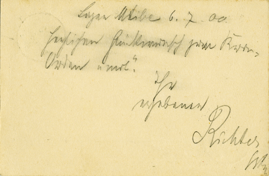 26.11.1900, vor Eröffnung der Feldpoststation Shanhaikuan: Feldpostkarte geschrieben in "Ling-Schong i.Novmb 1900" mit Stempel K.D.FELDPOSTSTATION No 4 & blauem SB-Stempel "OSAS. EXPED. I.BAT. 2.INF-REGMTS" nach CRIMMITSCHAU (17.01.01); ArGe 300,-.