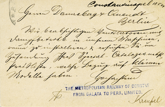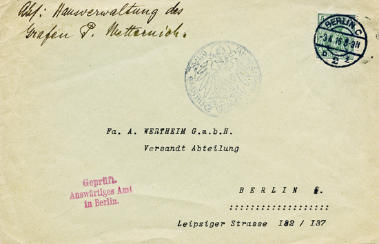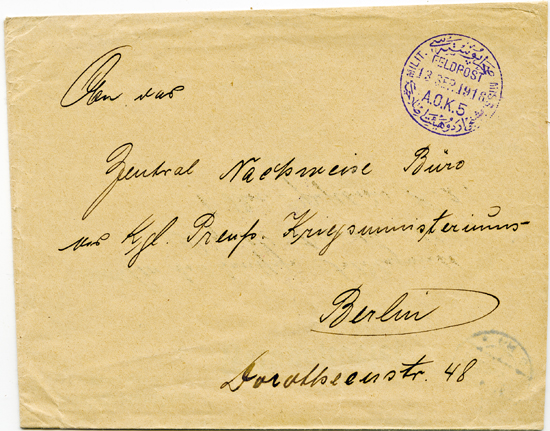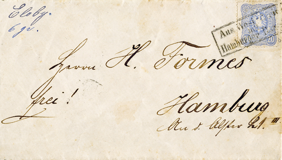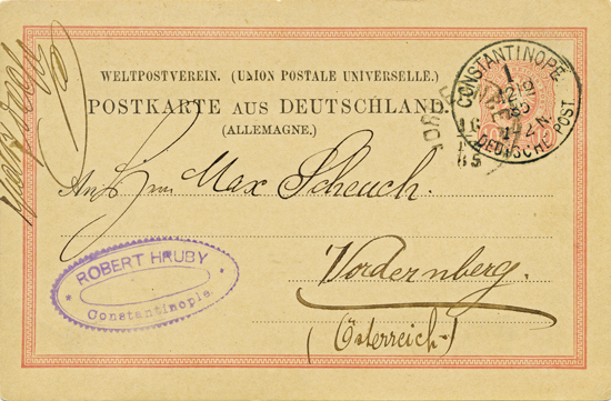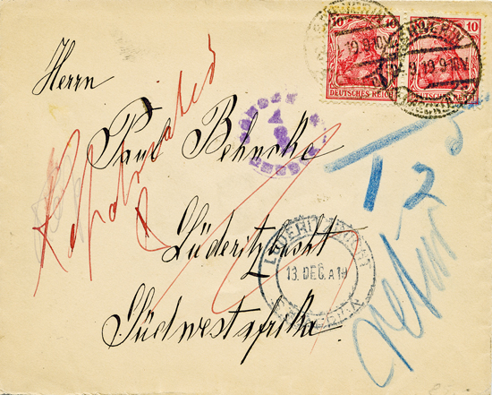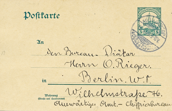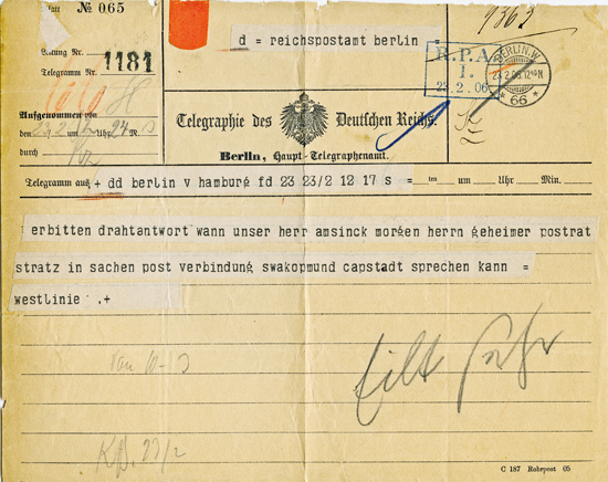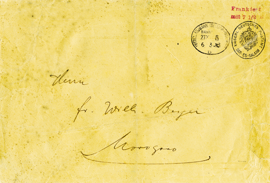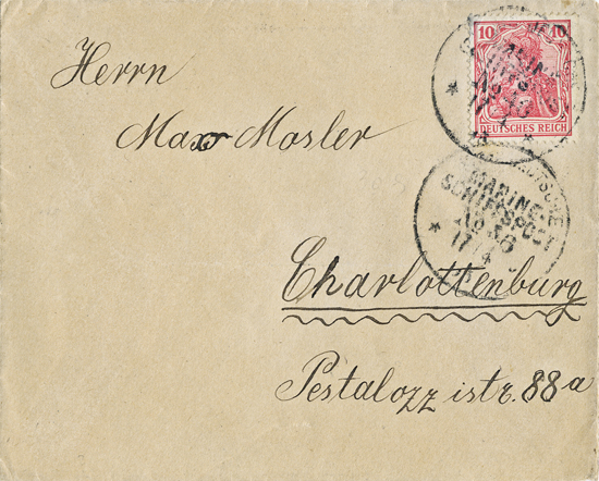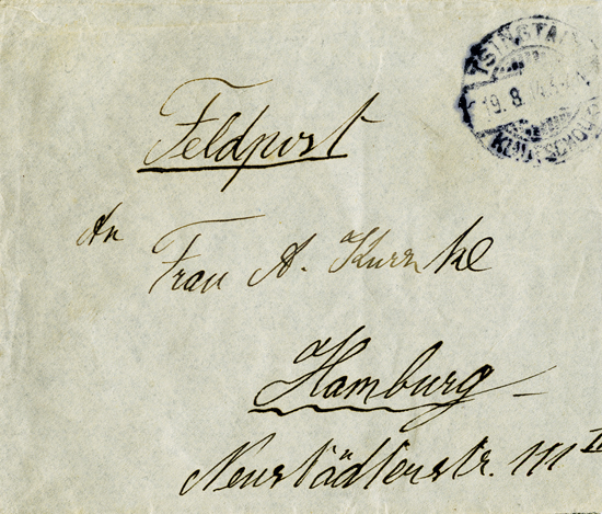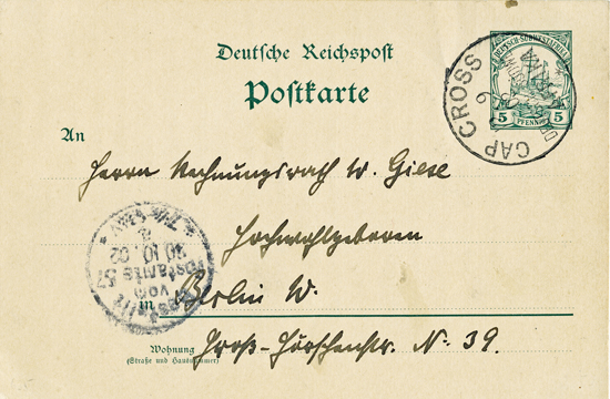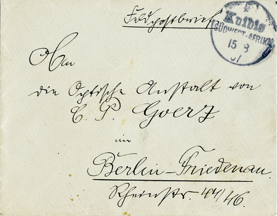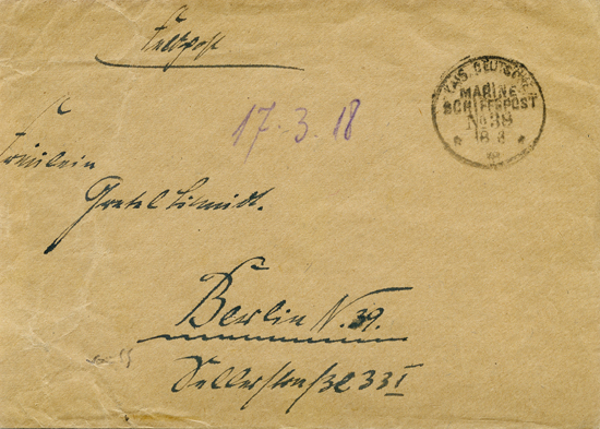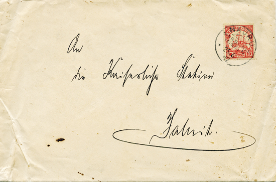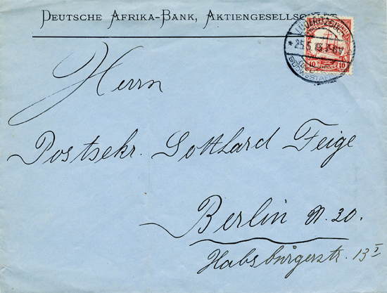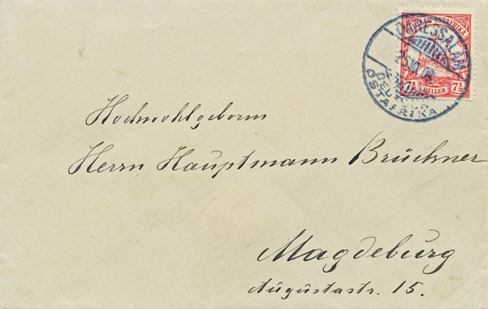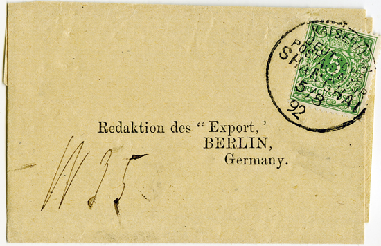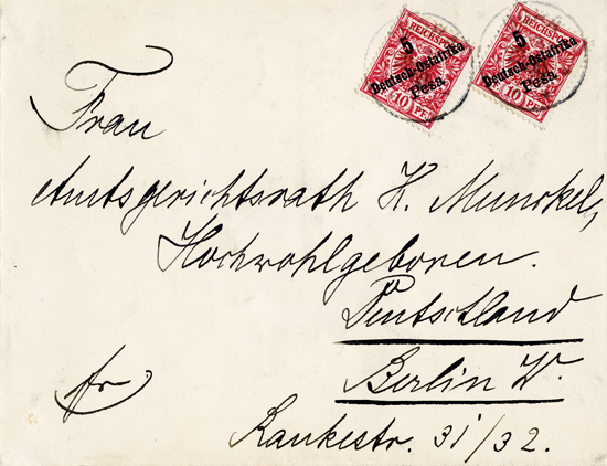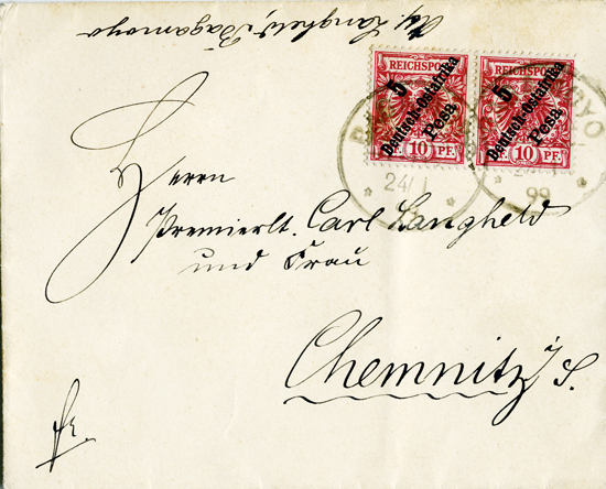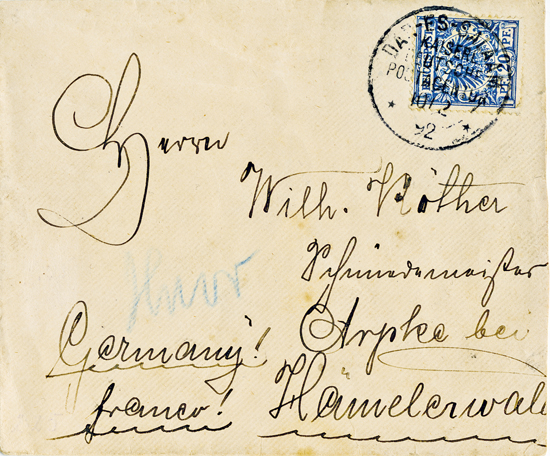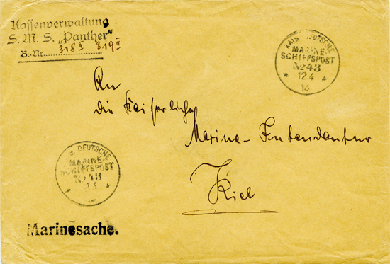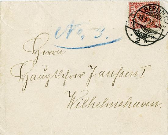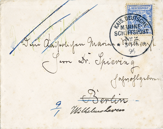15.09.1891: Hofpostamts-Inhaltsbrief mit Absenderangabe vom Marine-Zahlmeister Janssen "S.M.S. Sophie (Transportdampfer Kriemhild)" mit DR 10Pfg (Mi.48b) und Stempel BERLIN C.2.*w nach Wilhelmshaven (15.9.91). Beleg von der Präsenz der Korvette "Sophie" und des Transportdampfers "Kriemhild" in Valparaiso während des Bürgerkriegs in Chile ab Mitte August 1891. Schöner und seltener Beleg vom Auslandseinsatz in Südamerika zur Wahrung deutscher Interessen.