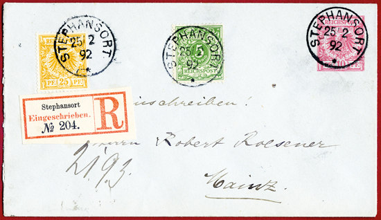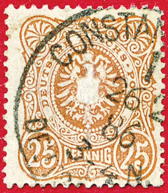 1898, Marke: 25 Pf orange Krone Adler mit steilem Überdruck postfrisch (Mi.5 II), tiefst geprüft Jäschke-Lantelme BPP, Michelwert 100,-.