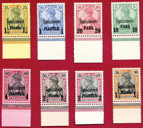 1906-1918, Marke: 1/2 Dollar auf 1 M und 1 Dollar auf 2 M mit Wasserzeichen (Mi 44 IA, 45 IA), gestempelt, Michelwert 100,-.