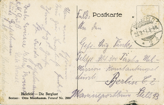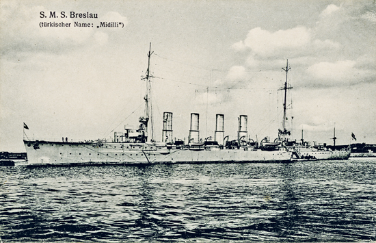 ca. 1915: ungebrauchte s/w AK "S.M.S. Breslau (türkischer Name: Midili)"