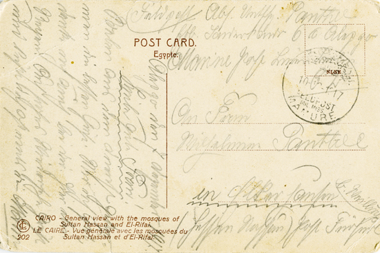 1900: zwei Feldpostkarten (3.8. & 7.8.) mit Suezkanal Motiven und Seepoststempel MSP No.28 (= SMS Batavia) sowie blauem Soldatenbrief- stempel "OSTAS.EXPED.FELDLAZERTH 4" an Fräulein Gammert in BRESLAU.