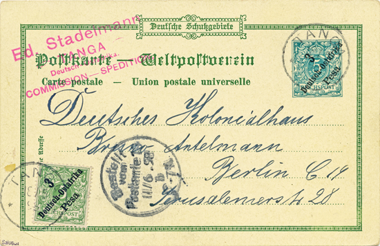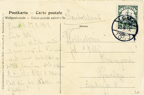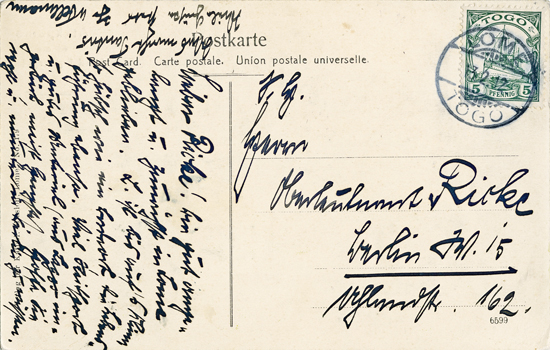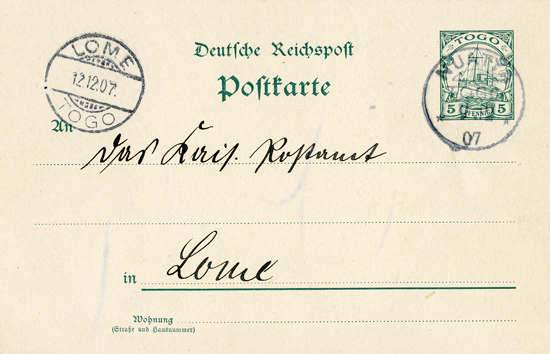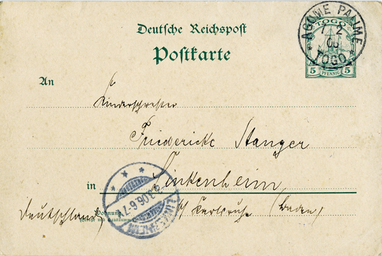 11.08.(??), Französische Besetzung: 5Centimes Blanko Ganzsachenkarte (Mi.P1) mit Stempel ANECHO TOGO.