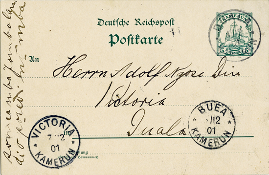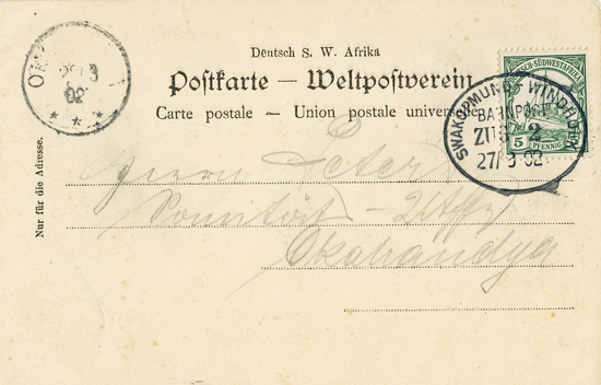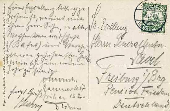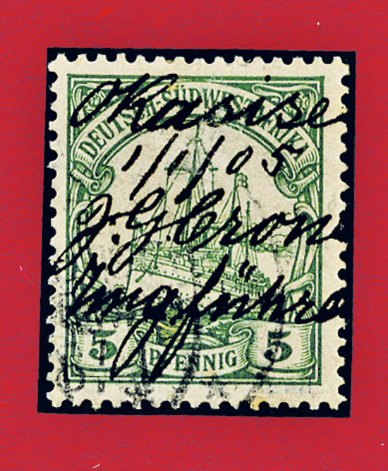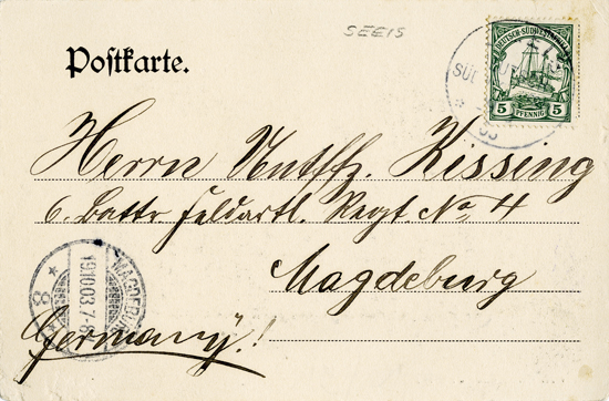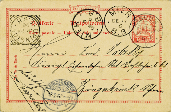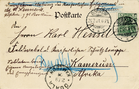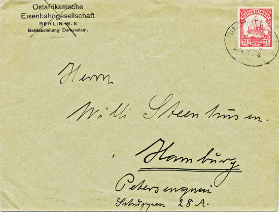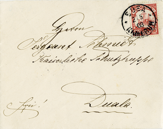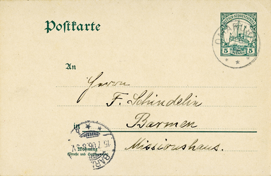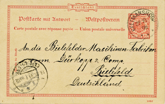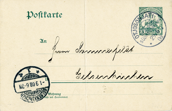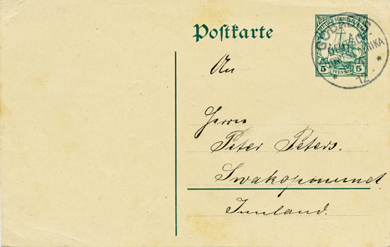 05.08.1901: 10Pf (Mi.9) mit Seepoststempel DSLHW auf vorgedrucktem Firmenbrief "J.FERD. STHAMER, WEST-AFRIKA" an die deutsche Geschätsabteilung der Firma in HAMBURG (07.09.1901).
