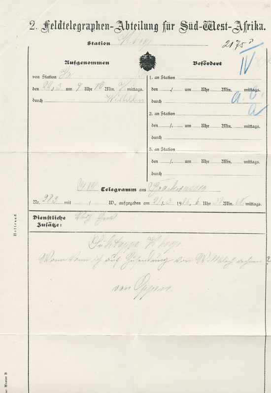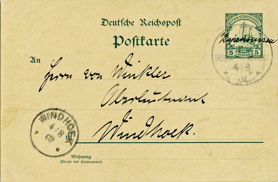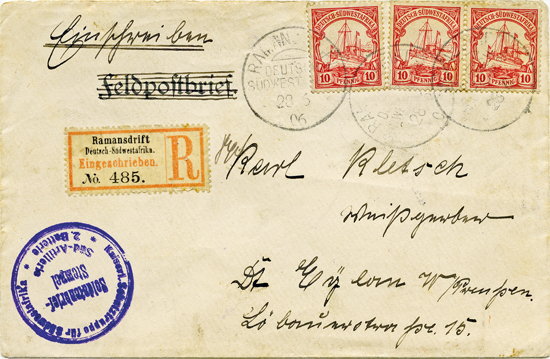1896: Premierlt. F.v.Bülow: "Drei Jahre im Lande Hendrik Witboois. Schilderungen von Land und Leuten", Verlag Ernst Siegfried Mittler und Sohn, Berlin 1896. Zahlreiche Abbildungen, 2 Karten. Sehr gute Erhaltung.