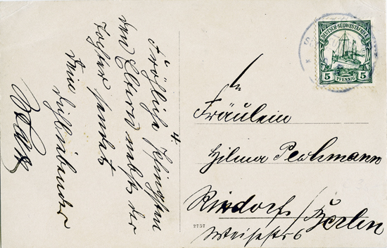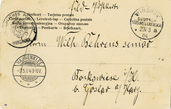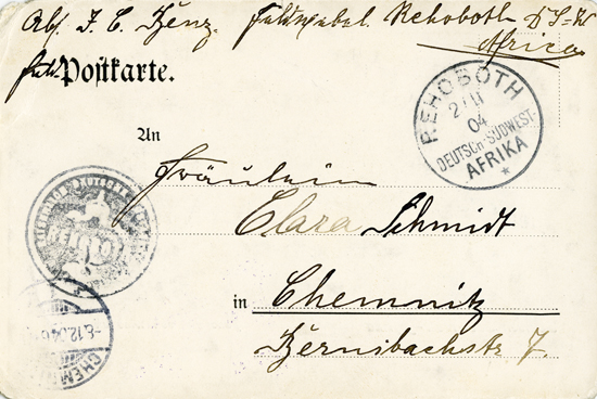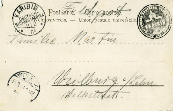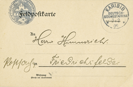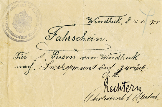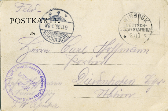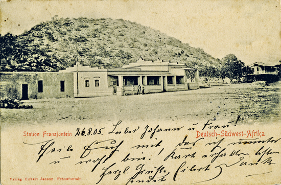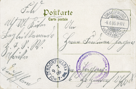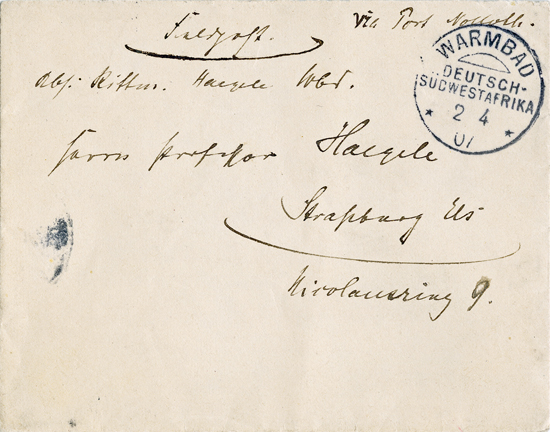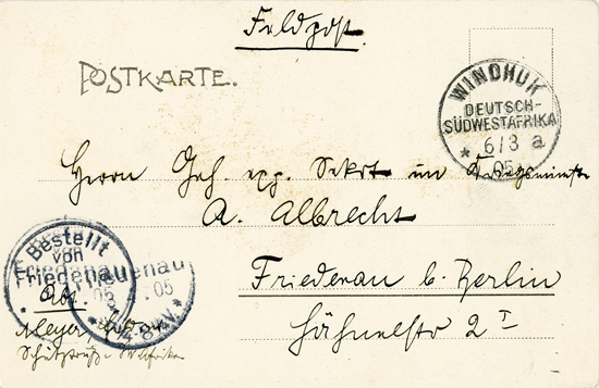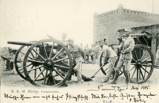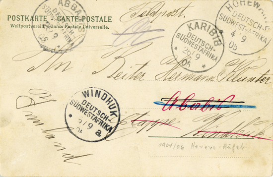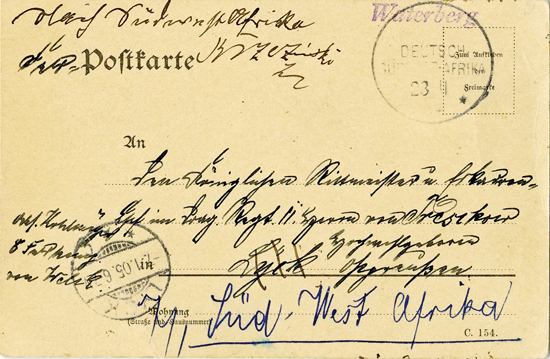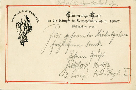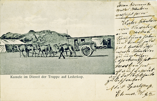 1932: Hans, Grimm: "Der Zug des Hauptmann von Erckert", Klosterhaus-Verlag, Lippoldsberg. 64 Seiten. Sehr guter Zustand. Dazu Ansichtskarte mit Originalfoto der Grabstätte von Hauptmann von Erckert. NB: von Erckert führte als erster Kamele als Reit- und Tragetiere in der Schutztruppe ein. Er starb 16.3.1908 im Kampf gegen Simon Kooper.