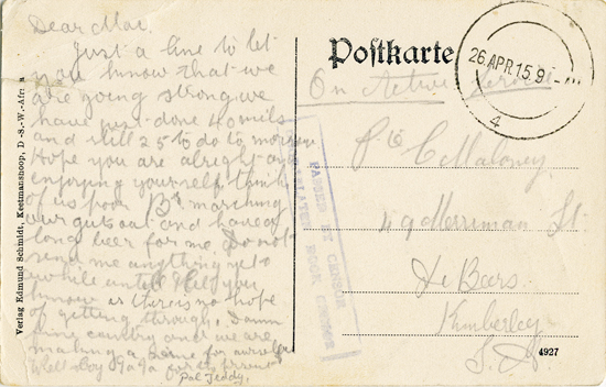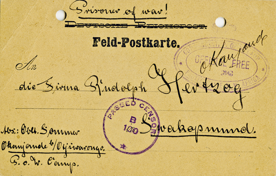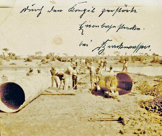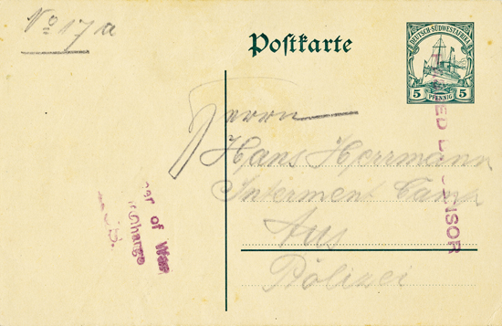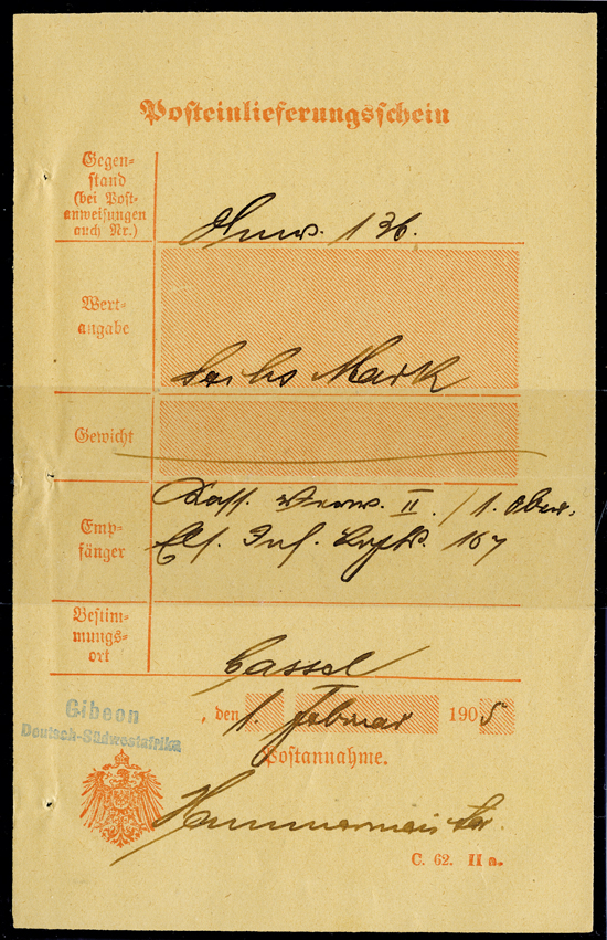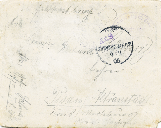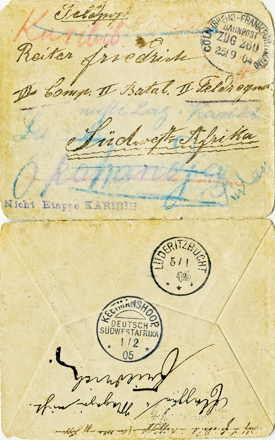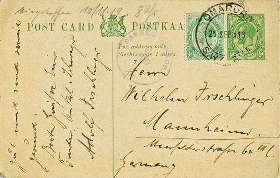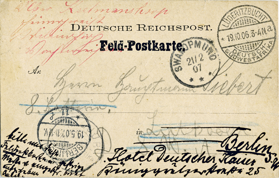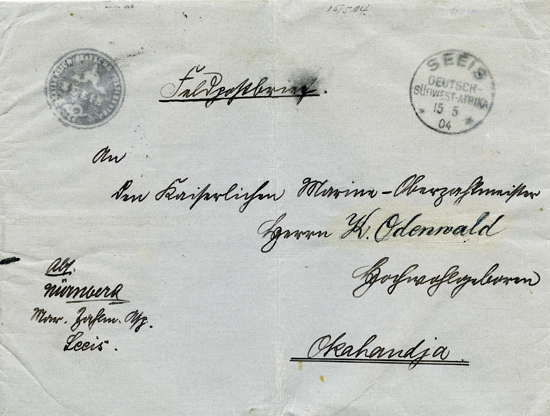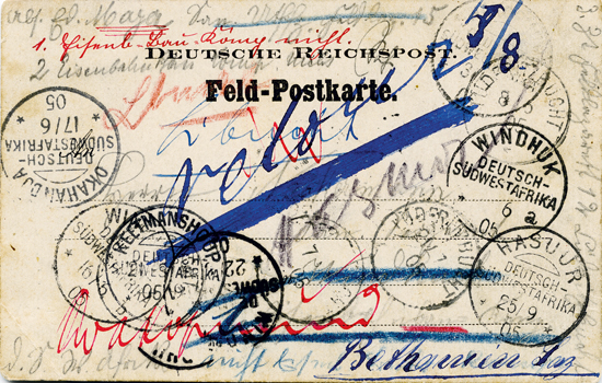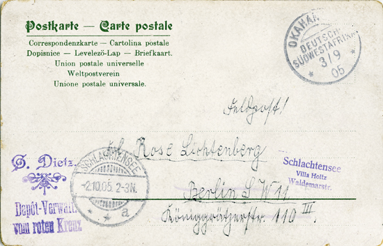 1932: Hans, Grimm: "Der Zug des Hauptmann von Erckert", Klosterhaus-Verlag, Lippoldsberg. 64 Seiten. Sehr guter Zustand. Dazu Ansichtskarte mit Originalfoto der Grabstätte von Hauptmann von Erckert. NB: von Erckert führte als erster Kamele als Reit- und Tragetiere in der Schutztruppe ein. Er starb 16.3.1908 im Kampf gegen Simon Kooper.