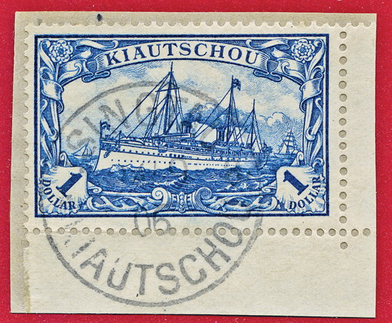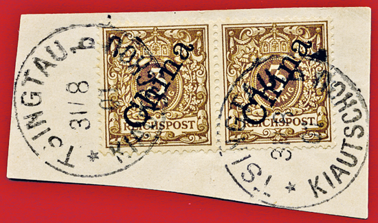 04.02.1902: 3Pf (Mi.15a) mit klarem Stempel TSCHINGWANGTAU auf Briefstück; geprüft Bothe BPP.