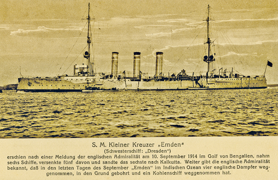 ca. 1915: ungebrauchte AK "S.M. Kleiner Kreuzer Emden".