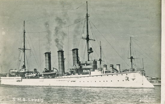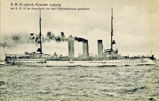 ca.1900: ungebrauchte s/w AK "S.M.Kl.gesch.Kreuzer Leipzig am 8.12.14 im Seegefecht bei den Falklandinseln gesunken"