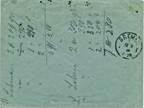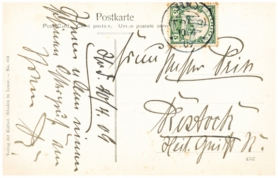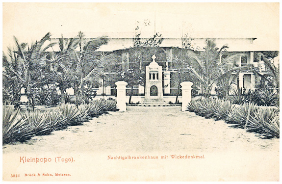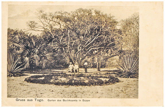 30.12.13: 5Pf (Mi.21) mit Stempel ASSAHUN auf AK "Garten des Bezirksamts in Seppe" nach Bremen. Absender ist ein Obermaschinistenmaat der "Straßburg", auf Inlandsausflug während des Besuchs der "Detachierten Division" in Togo.