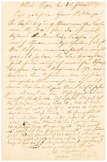 03.07.1891: DR 10Pf GSK (Mi.VP25) mit Stempel KLEIN-POPO vom Gouvernementssekretär v.Hagen nach Celle, weitergeleitet nach Freiburg/Elbe. Mittelfalte.