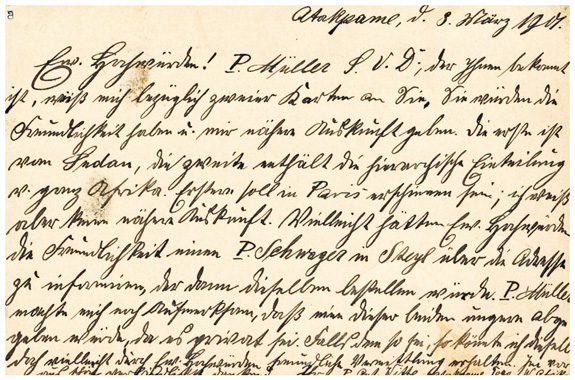 08.03.02: 5Pf GSK (Mi.P9) mit Stempel KLEIN-POPO geschrieben in "Atakpame d. 3.März 1902" nach Trier (28.3.02); Missionarstext vom Pater Witte.