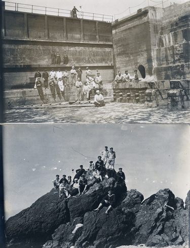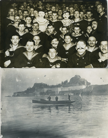 1912-1914: interesante kleine Dokumentation der SMS "Loreley" von den Jahren 1912 bis 1914 anhand von 11 s/w Fotos, darunter Bilder der Schwarzmeer-Reise 1912 (Gagri, Noworossisk), der Adria-Reise 1913 (Mudania - Marmarameer), der Mittelmeer-Reise 1914 (mit Aufnahmen der Dockzeit in Alexandrien/Ägypten wie auch Ausflüge nach Abukir) und ein Mannschaftsbild. Dazu vier kleinformatige s/w Ansichtskarten aus Ägypten.